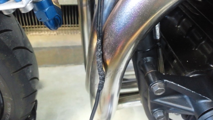 走ってるうちにタイラップとタイラップの間に遊びができマフラーに接触。