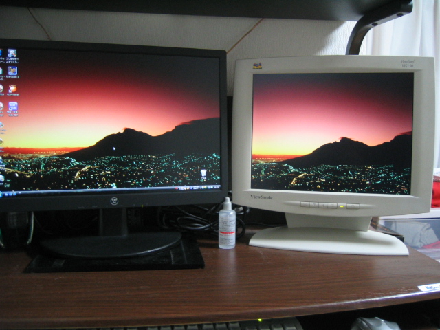 サービス品の19インチワイドモニターが来たので、15インチモニターと
